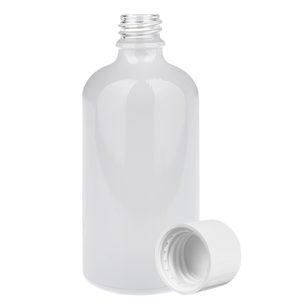 100 ml Flasche mit weissem Standard Schraubverschluss & Kindersicherung (11 mm Öffnung)...mehr