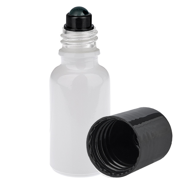 - Apothekenflasche mit 18 mm Gewinde (UT18). Komplett mit Roll-On Verschluss (Deoroller).