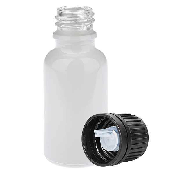 - Apothekenflasche mit 18 mm Gewinde (UT18). Komplett mit Tropfverschluss.