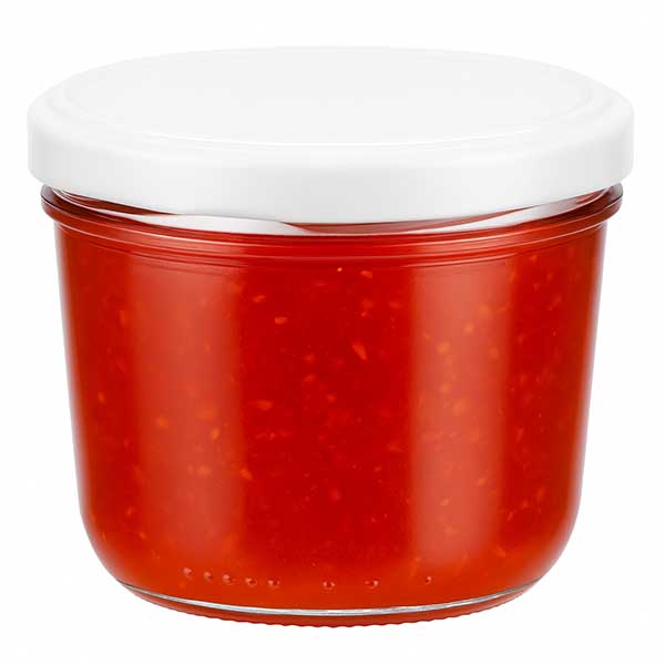 - Anwendung Deckel: Beim Einmachen über dem Füllgut genügend Luftraum lassen (ca. 7%, zwei fingerbreit) und vor dem Zudrehen gut erwärmen, damit die Dichtung elastisch wird. Details dazu finden Sie in der Ihrer Lieferung beiliegenden Anleitung.