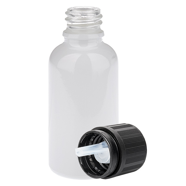 30 ml Tropfflasche mit schwarzem Originalitätsverschluss & Kindersicherung (1 mm Öffnung) WhiteLine UT18/30