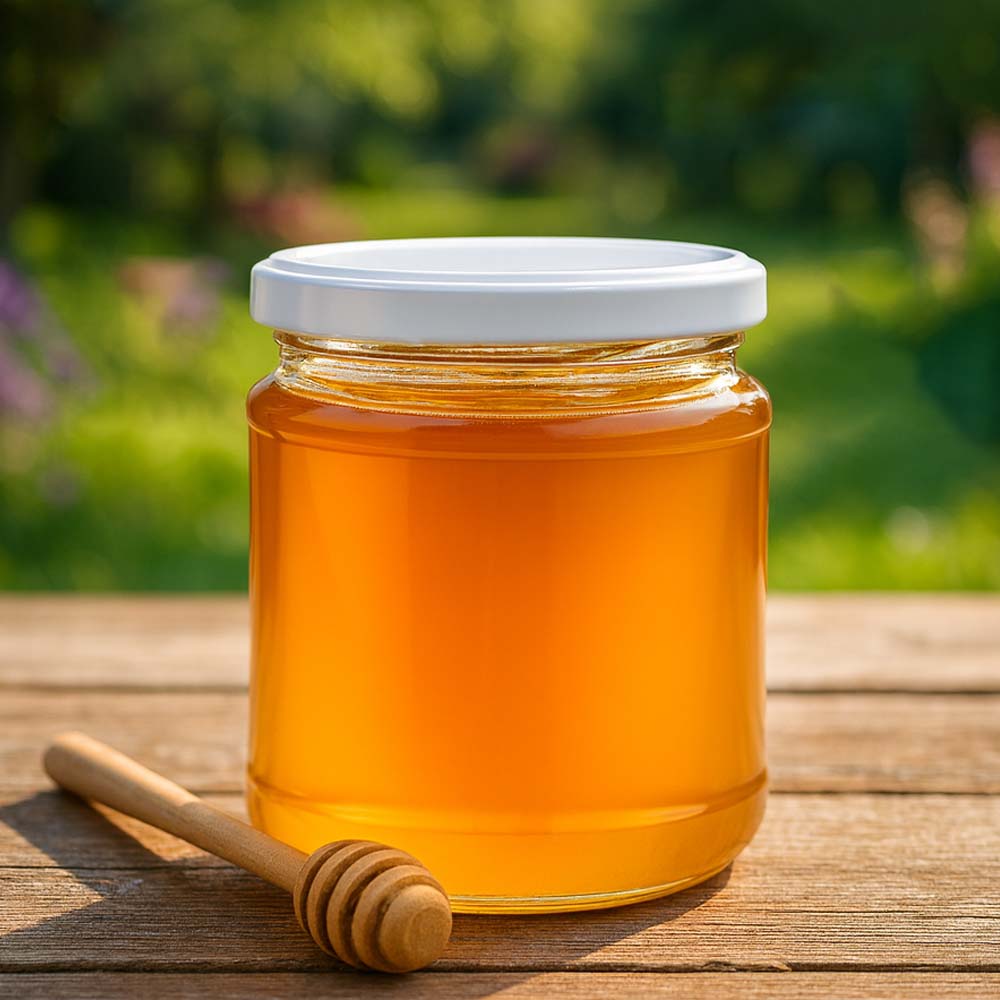 Großes 350 g Honigglas mit weißem BasicSeal UNiTWIST-Deckel – ideal für Familiengläser, große...