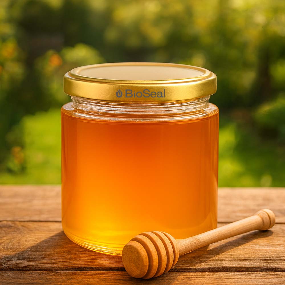 Großes 350 g Honigglas mit goldenem BioSeal UNiTWIST-Deckel – ideal für Familiengläser, große...