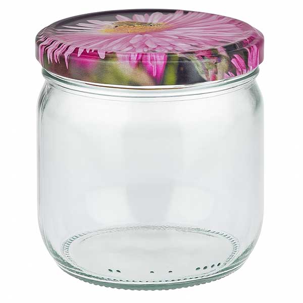 425ml Rundglas + BasicSeal Deckel Blüten-Dekor UNiTWIST