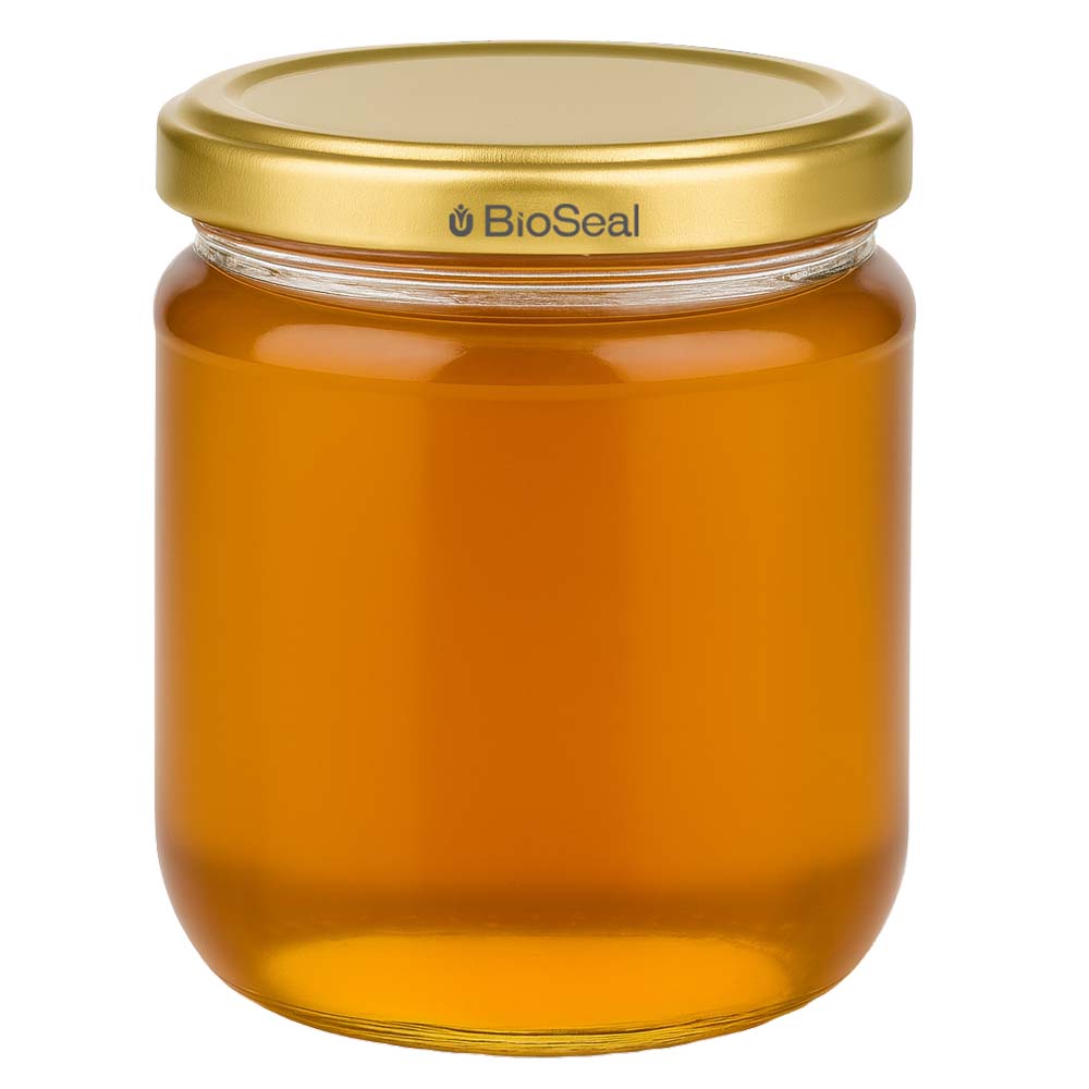500g Honigglas mit goldenem Deckel BioSeal UNiTWIST