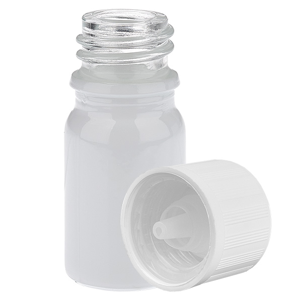 5 ml Flasche mit weissem Standard Tropfverschluss mit Kindersicherung (1,2 mm Öffnung) WhiteLine UT18/5