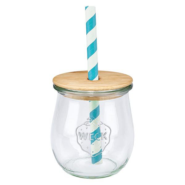 - Ausführung: WECK-Tulpenglas 220ml mit Holzdeckel inkl. Öko Strohhalm aus Paier