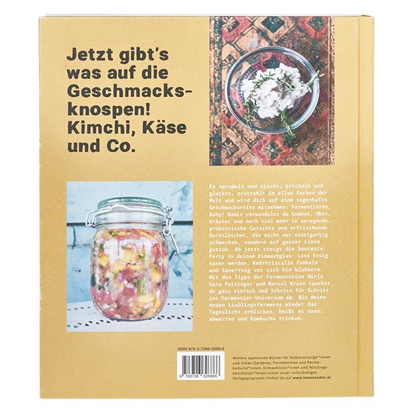Ergänzt wird das Ganze durch internationale Rezeptideen, in denen Ihre Fermente die Hauptrolle spielen – vom Tempeh-Burger bis zur Kefir-Colada. Mit den Tipps von Geru Pulsinger und Marcel Kruse werden Sie nach und nach zum echten Fermentier-Profi. Und falls doch einmal etwas schiefgeht: Gelassen bleiben gehört dazu. Deckel drauf, abwarten – und Kombucha trinken!