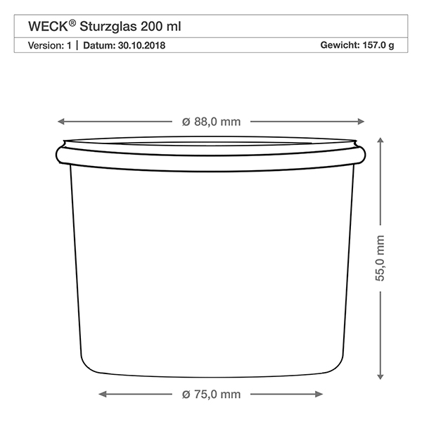 - Ausführung: WECK-Sturzglas 200ml mit Unterteil und Frischhaltedeckel